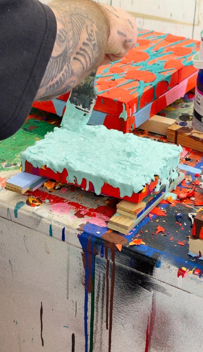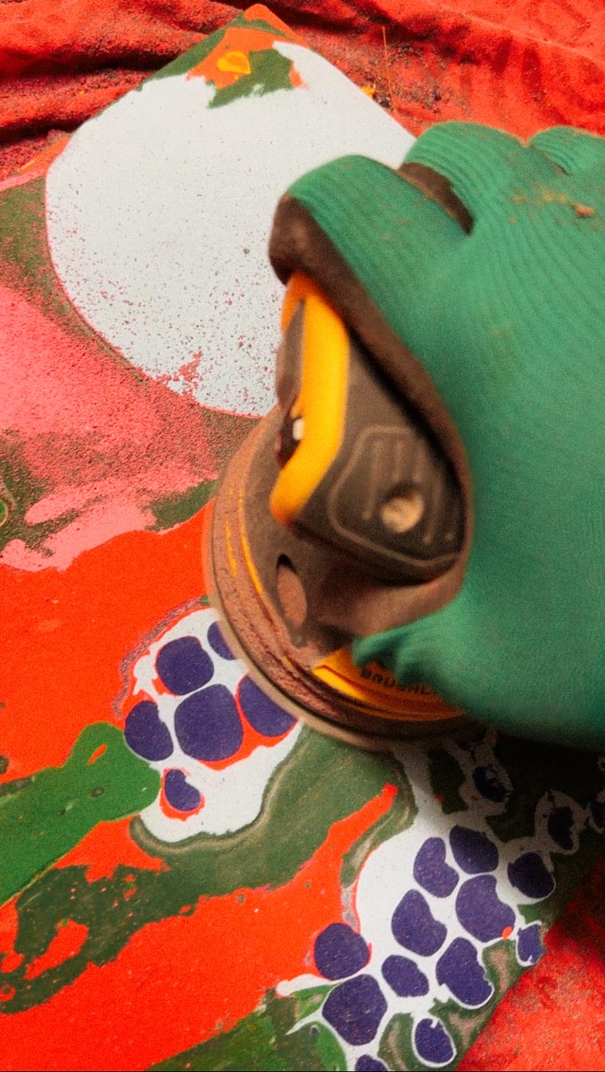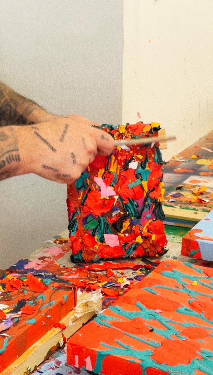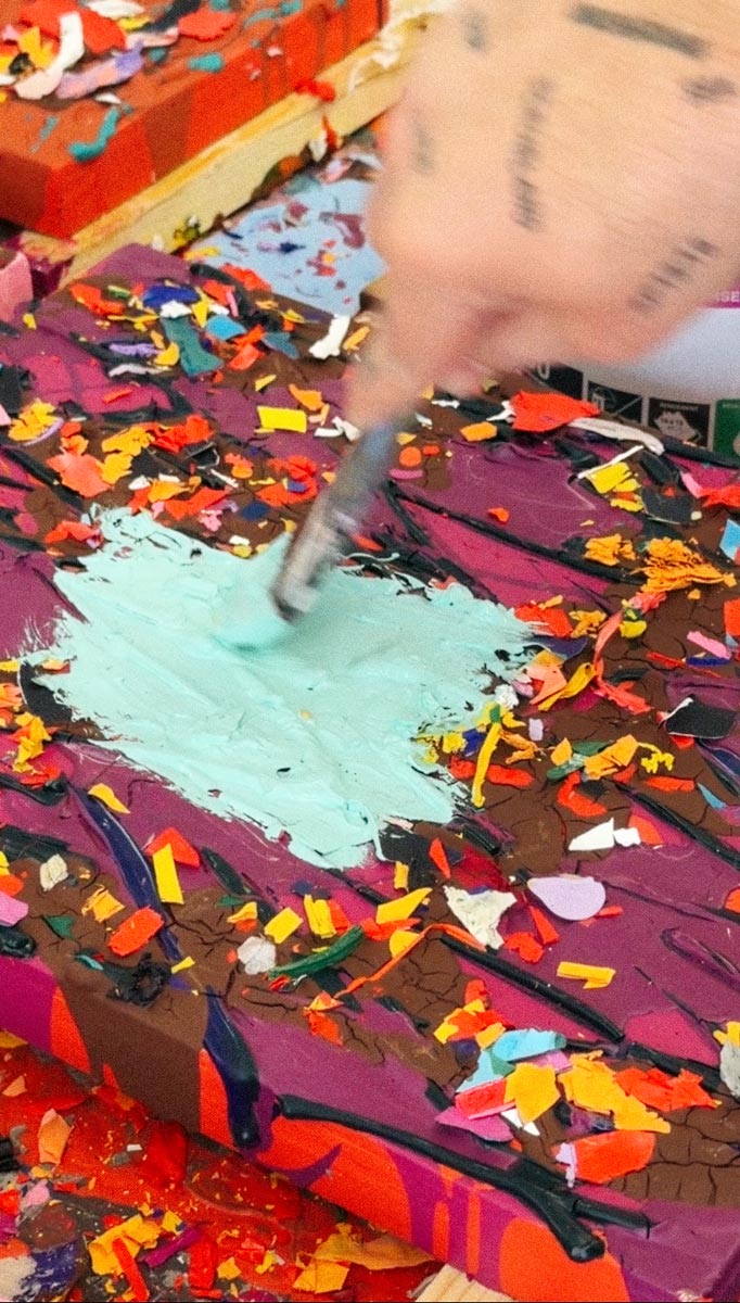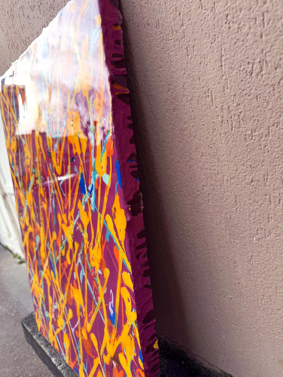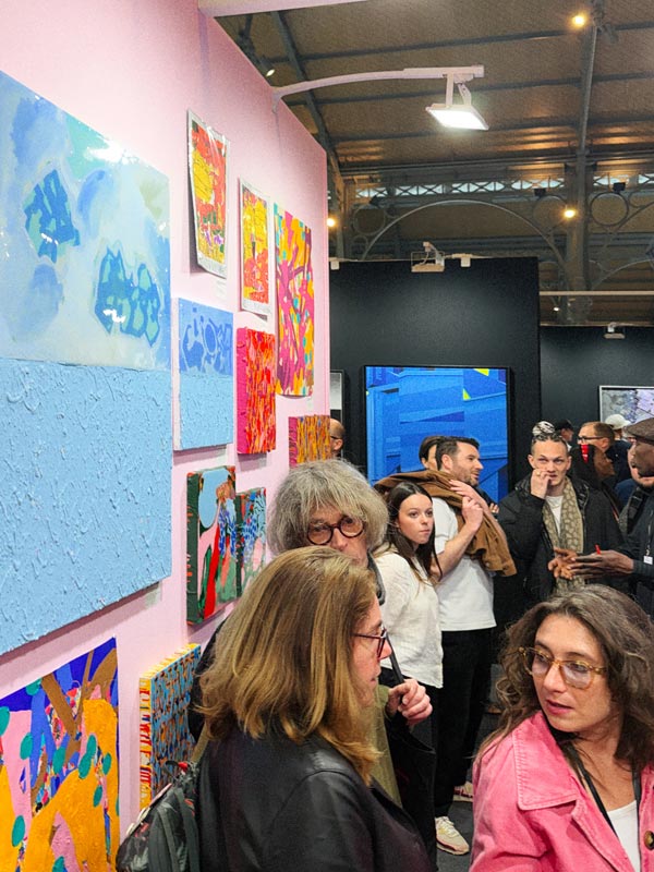 Nouvelle série d’œuvres pour les 10 ans de l’Urban Art Fair à Paris avec la galerie Artfwd. Voici de l’intelligence non artificielle : une réponse physique et organique à l’omniprésence du calcul numérique. Mon processus repose sur une sédimentation de couches successives appliquées sur des châssis en bois brut, que je viens ensuite poncer pour exhumer des strates enfouies. Ce geste brutal révèle une cartographie aléatoire que seul le cerveau et la main peuvent générer. C’est une végétation dense où chaque ligne devient une lutte avec la matière pour transformer le chaos en une harmonie vibrante. Dans une démarche écoresponsable, j’utilise une résine biosourcée qui vient figer ce réseau de lignes organiques aléatoires, offrant un fini précieux, presque émaillé. Ici, l’imprévisibilité n’est pas un bug, mais l’essence même du vivant.