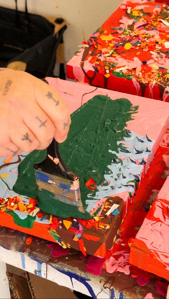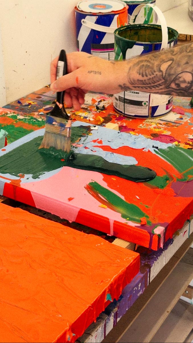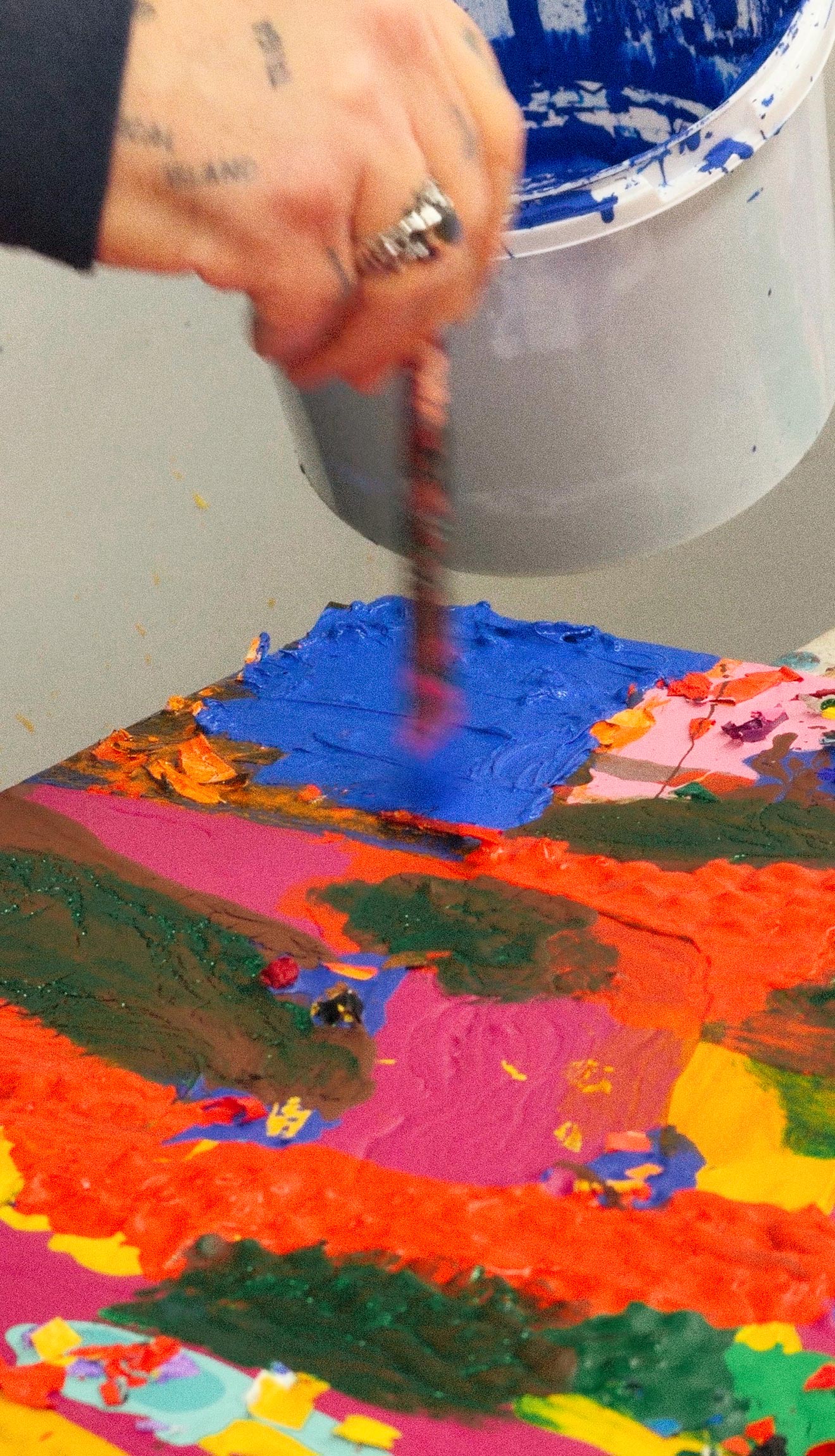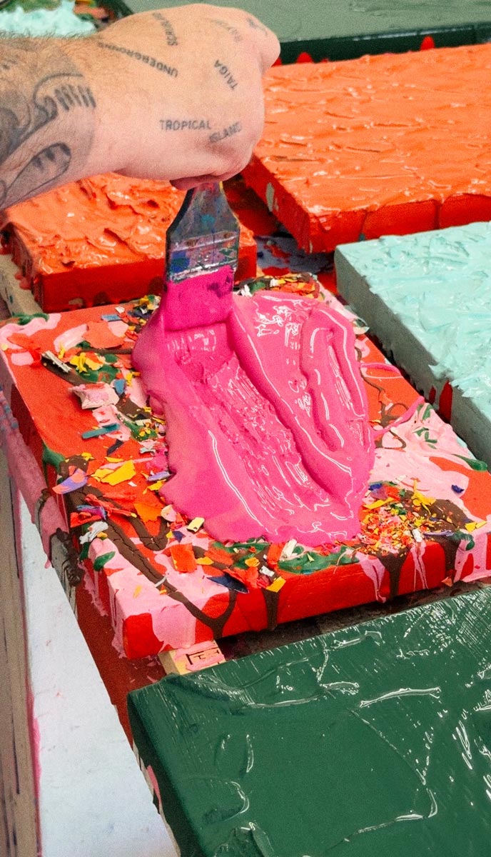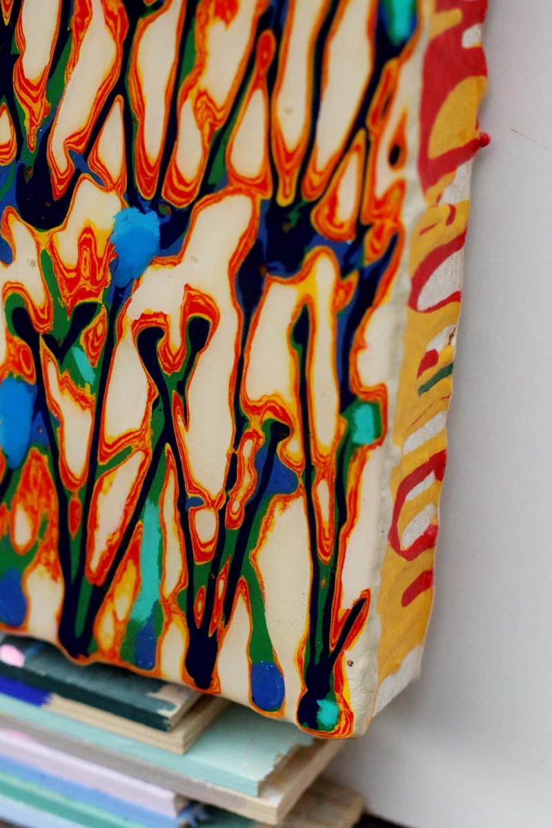 Nouvelle série d’œuvres pour les 10 ans de l’Urban Art Fair à Paris avec la galerie Artfwd. Voici de l’intelligence non artificielle : une réponse physique et organique à l’omniprésence du calcul numérique. Mon processus repose sur une sédimentation de couches successives appliquées sur des châssis en bois brut, que je viens ensuite poncer pour exhumer des strates enfouies. Ce geste brutal révèle une cartographie aléatoire que seul le cerveau et la main peuvent générer. C’est une végétation dense où chaque ligne devient une lutte avec la matière pour transformer le chaos en une harmonie vibrante. Dans une démarche écoresponsable, j’utilise une résine biosourcée qui vient figer ce réseau de lignes organiques aléatoires, offrant un fini précieux, presque émaillé. Ici, l’imprévisibilité n’est pas un bug, mais l’essence même du vivant.