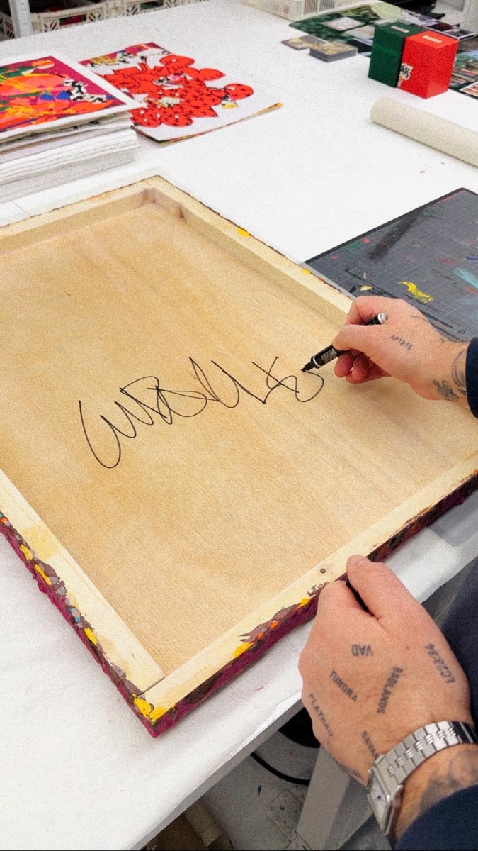 A new series of works for the 10th anniversary of the Urban Art Fair in Paris with Artfwd Gallery. This is non-artificial intelligence: a physical and organic response to the omnipresence of digital calculation. My process is based on the sedimentation of successive layers applied to raw wood frames, which I then sand down to exhume buried strata. This brutal gesture reveals a random cartography that only the brain and the hand can generate. It is a dense vegetation where every line becomes a struggle with matter, transforming chaos into a vibrant harmony. Within an eco-responsible approach, I use a bio-based resin to freeze this network of random organic lines, offering a precious, almost enamel-like finish. Here, unpredictability is not a bug—it is the very essence of the living.