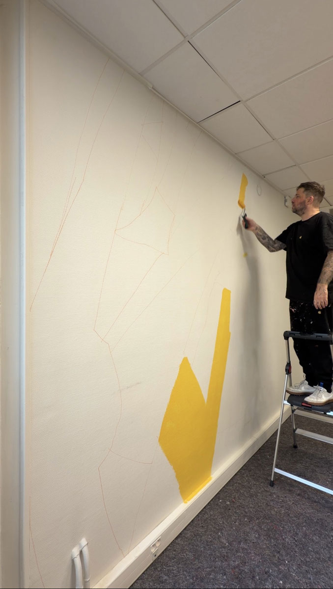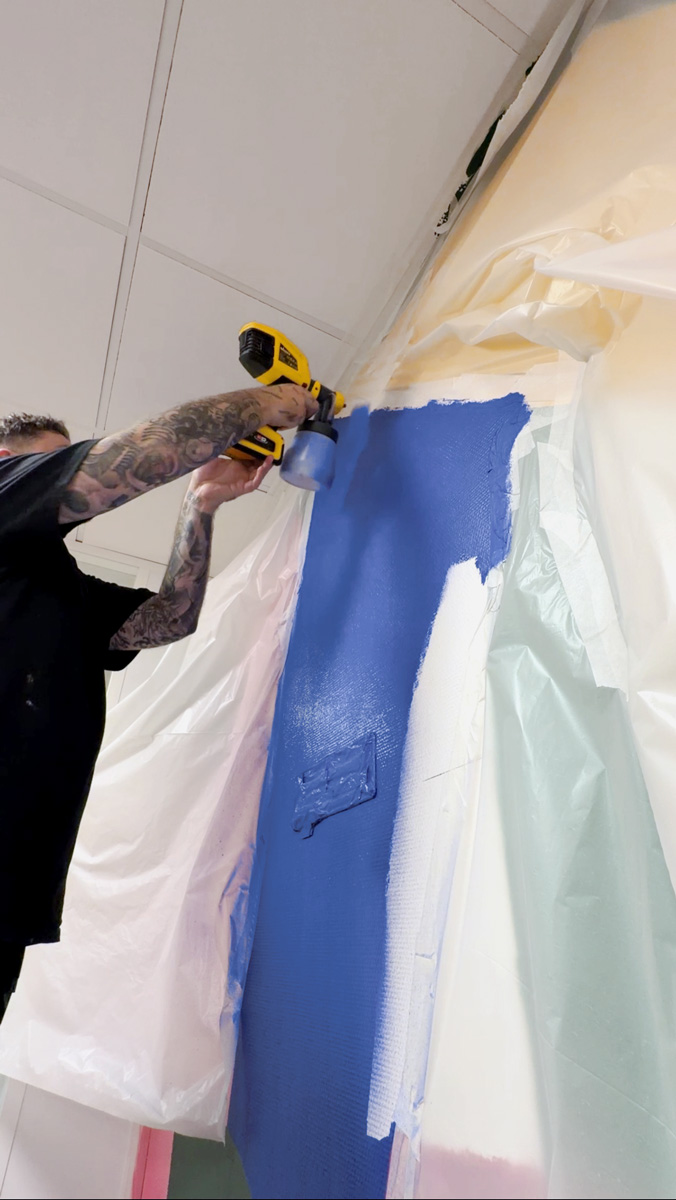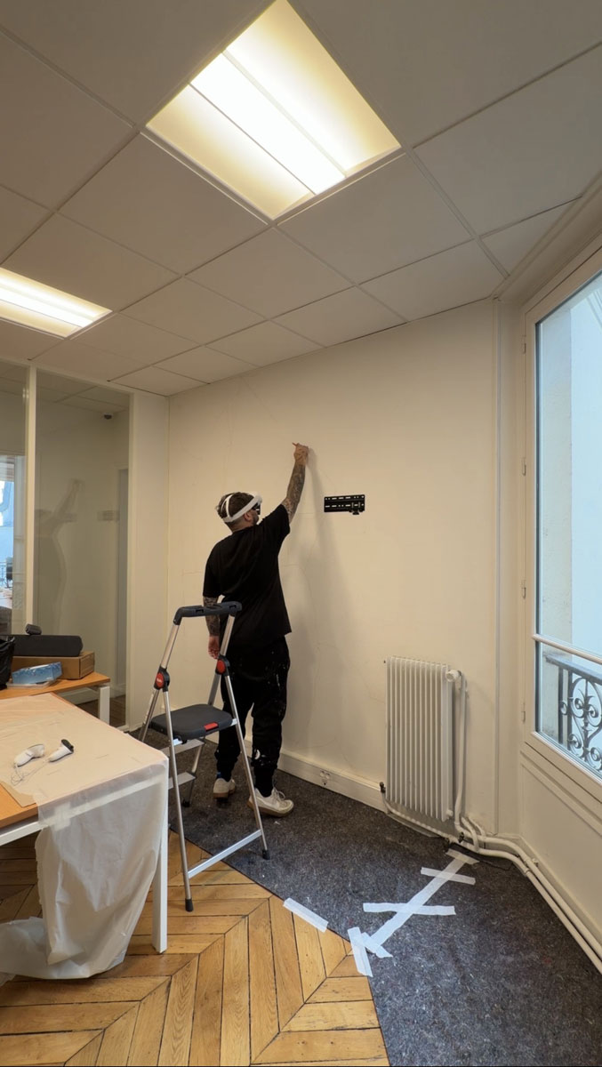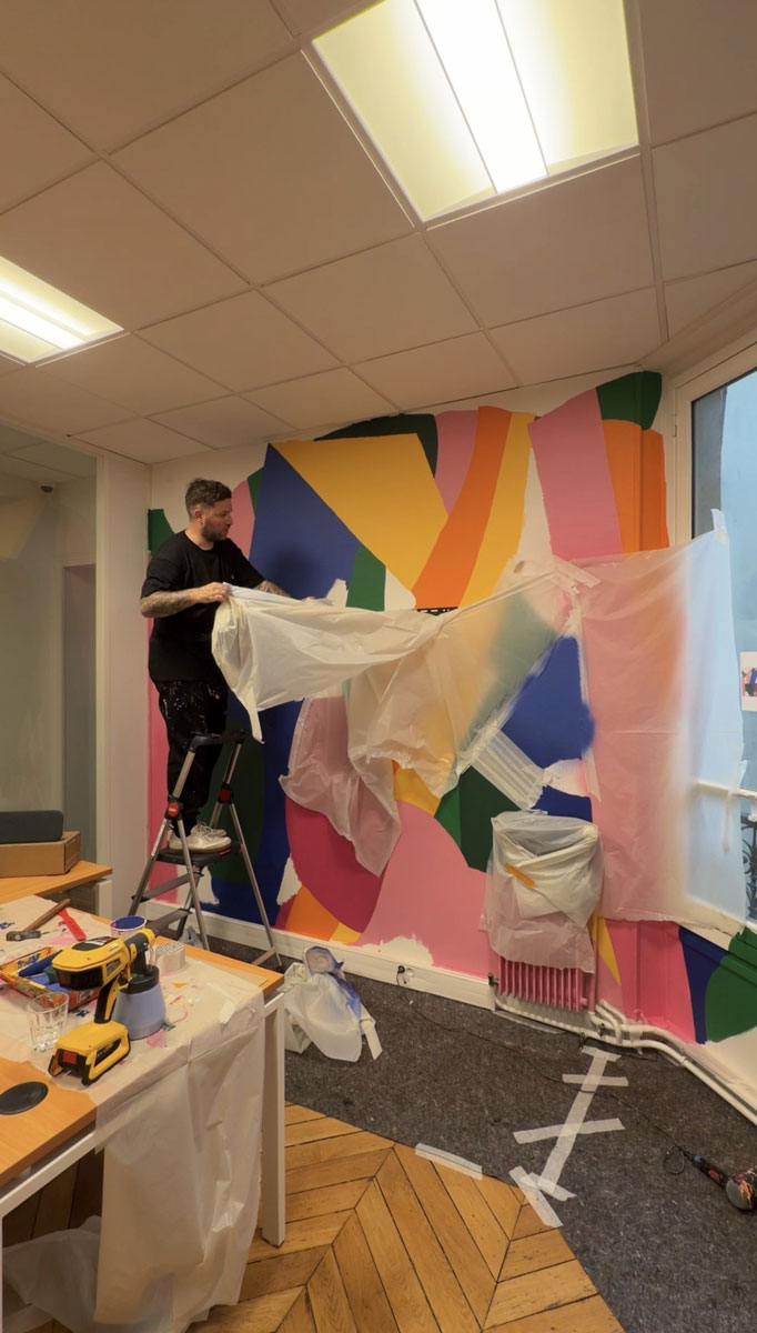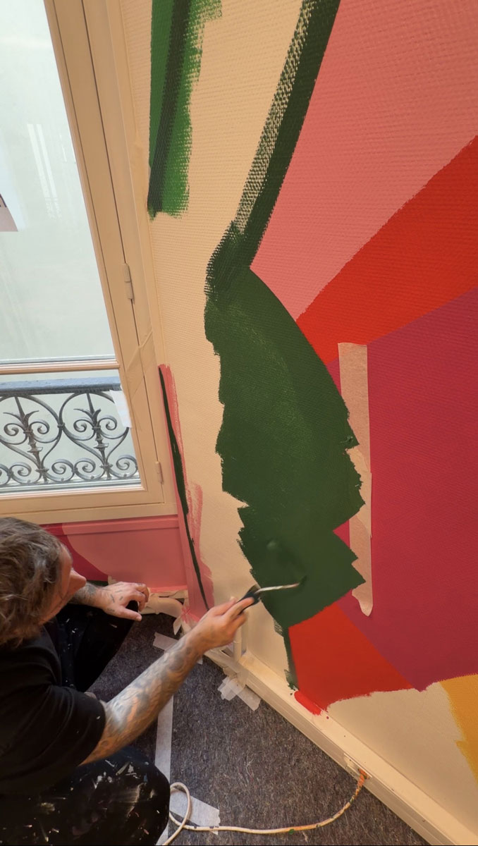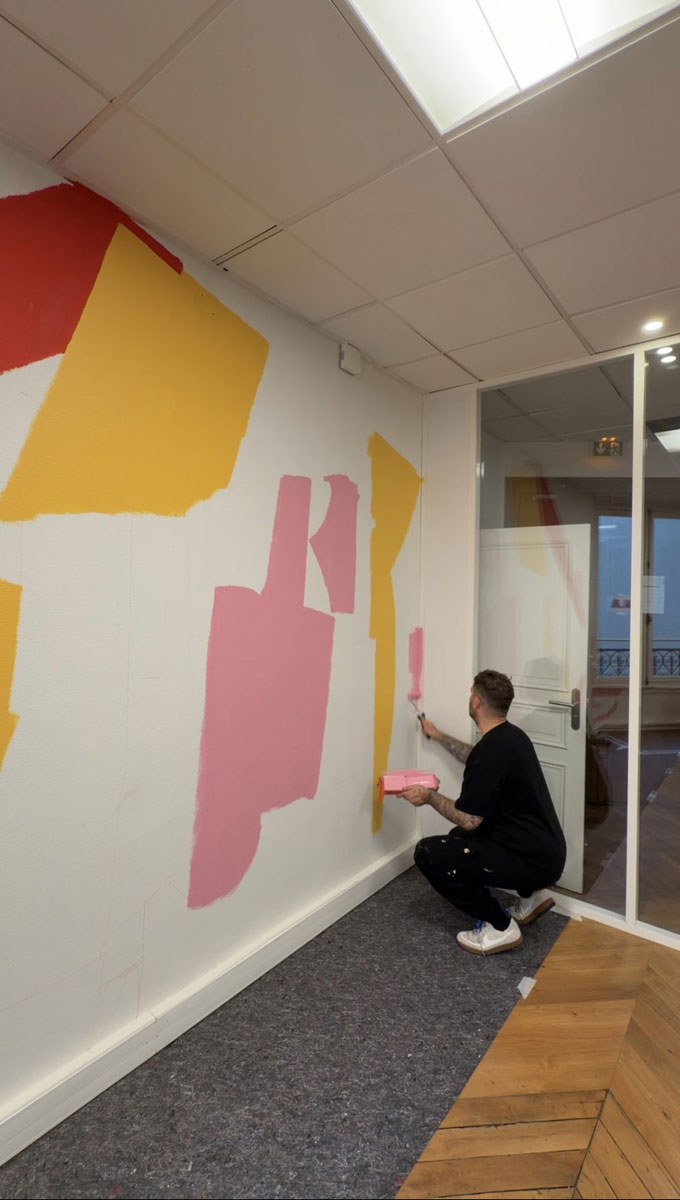 Painting for Dfns Paris office, rue du Louvre. Dfns is a Wallets-as-a-Service (WaaS) platform trusted by leading finetech and financial institutions to streamline digital seet operations. Curated by Robin Defilhes. Best assistants Juju and Tom. Paint Zolpan.