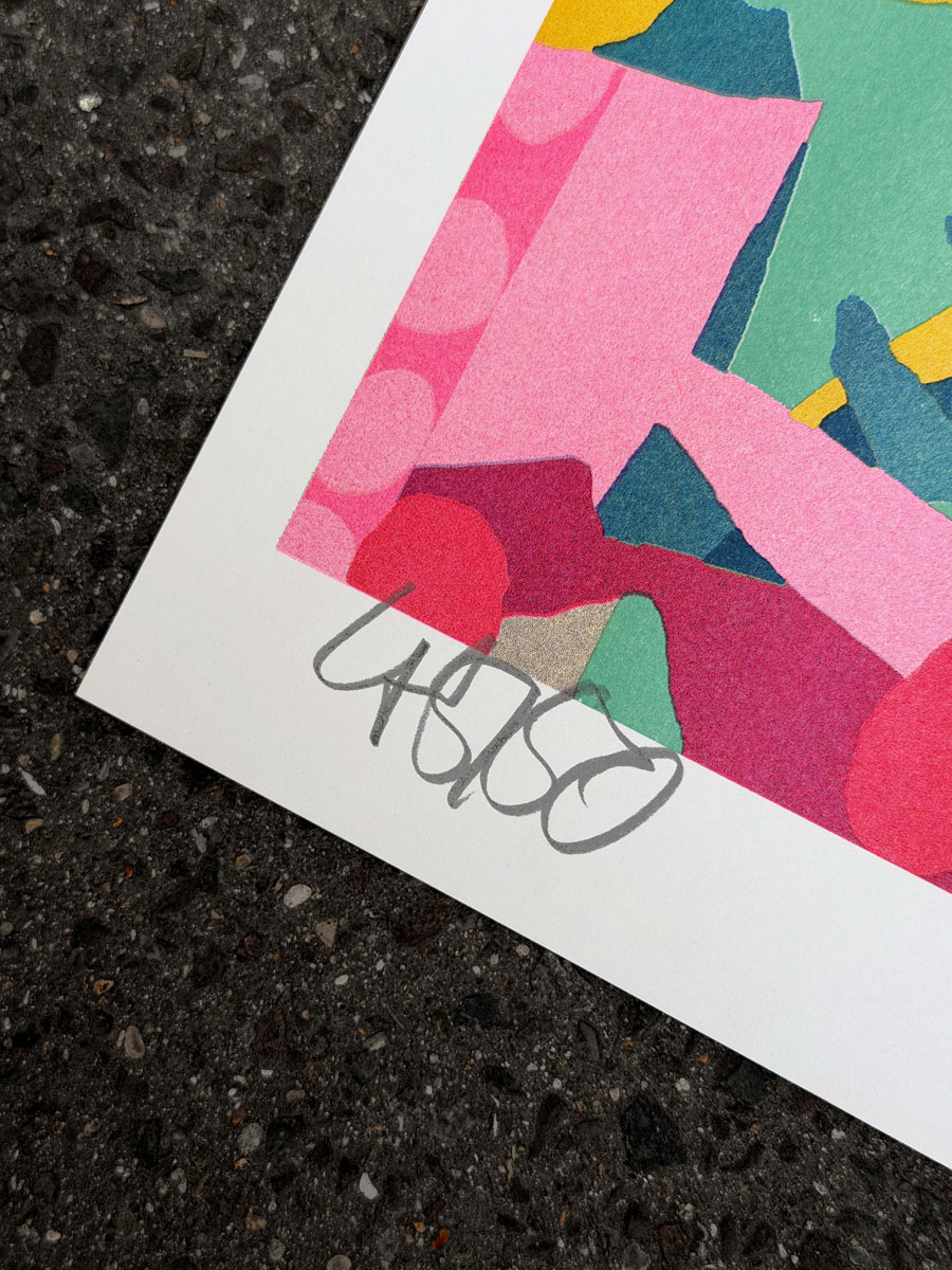 42 x 29,7cm risograph print on 120g Munken art paper with 5 colors. Designed, hand numbered and signed by Ludovilk Myers, limited edition of 50. Available here.
